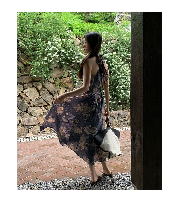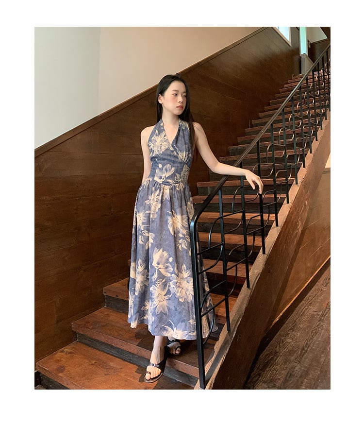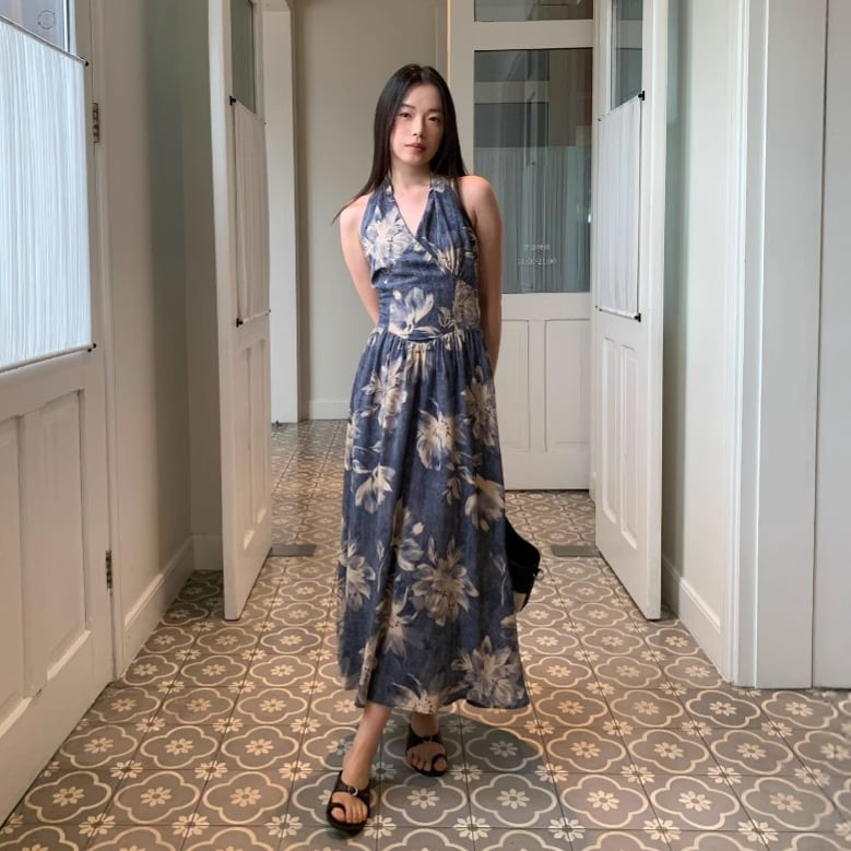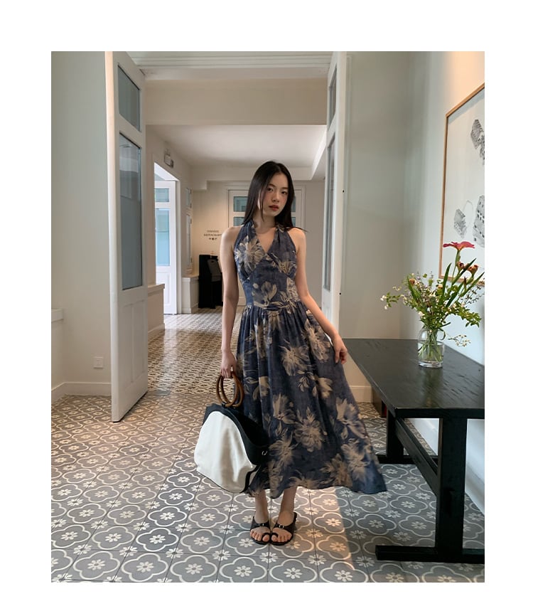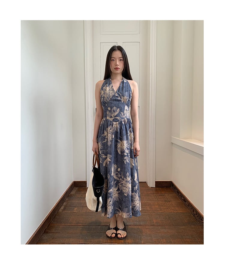 サマー ホルターネック ブルー ワンピース ドレス