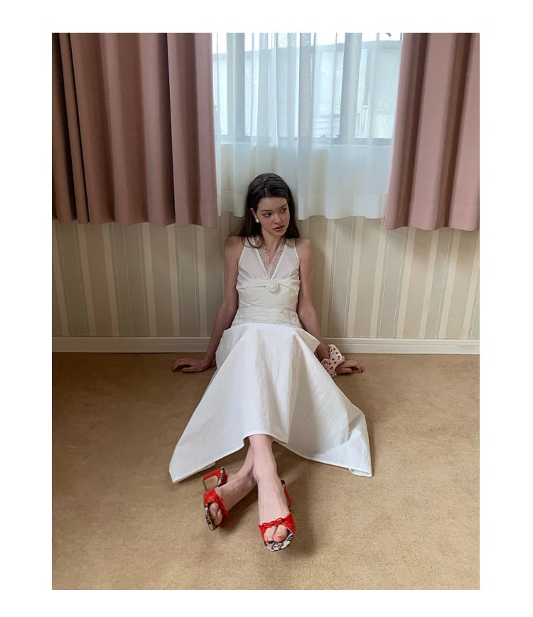 胸元のツイストデザインと繊細なレースディテールが上品なアクセントとなり、シンプルながらも華やかな存在感を放ちます。