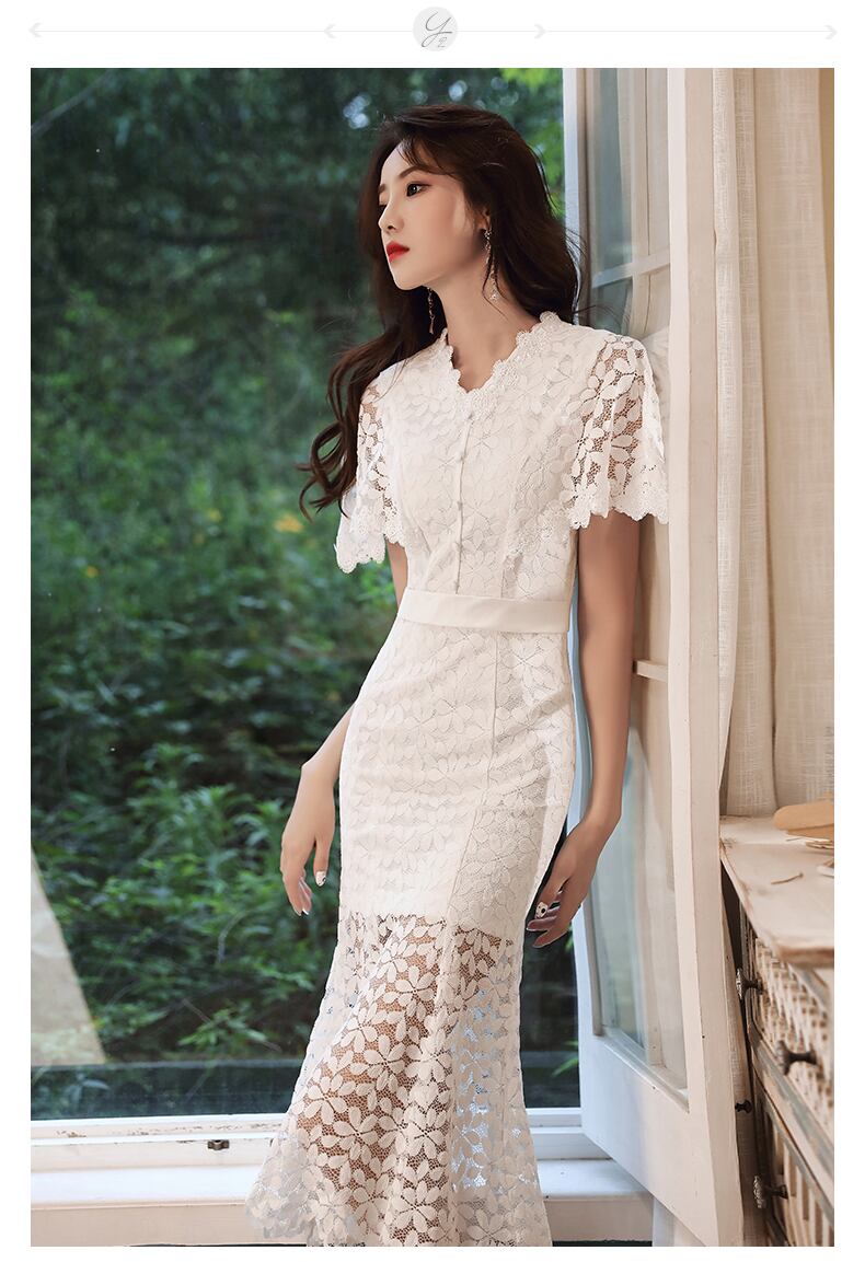 美しいVネックと、シルエットを美しく見せるマーメイドスカートが特徴です。