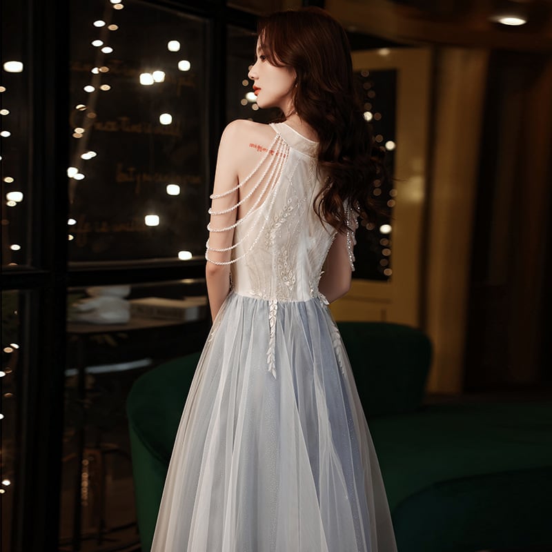 華やかなホルターネックドレス。セクシーさと上品さを兼ね備え、特別な日の演出にぴったりです。パーティーや結婚式などの特別なイベントで存在感を放ちながら、女性らしさを引き立ててくれる一着です。