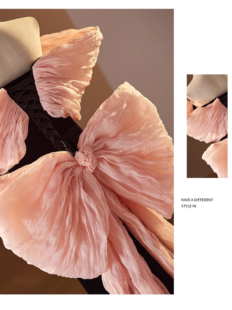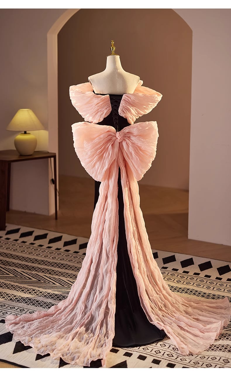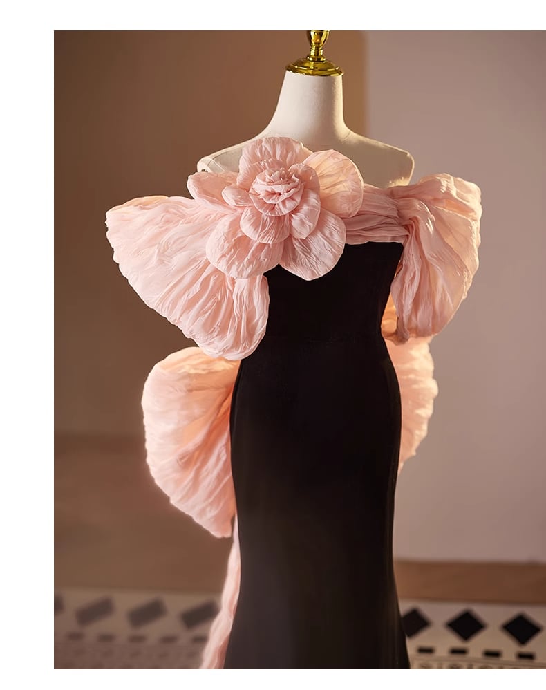 品位とエレガンスを兼ね備えたブラックピンクプリンセスフィッシュテールロングドレス。