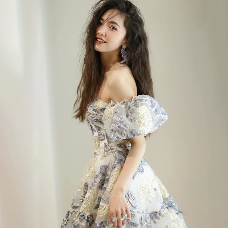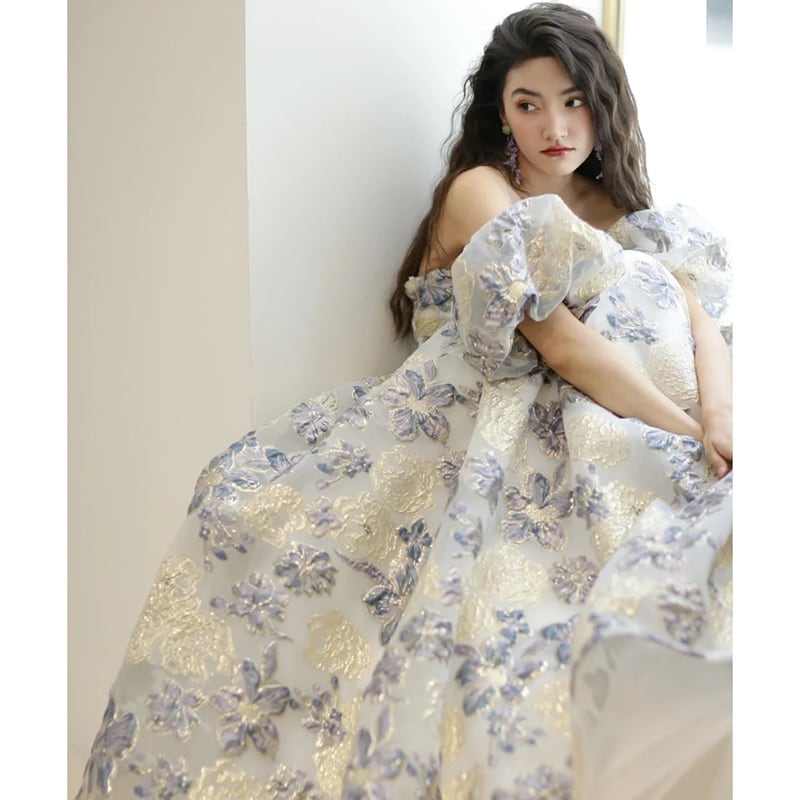 ハイエンド フラワー オフショルダー ロングドレス
