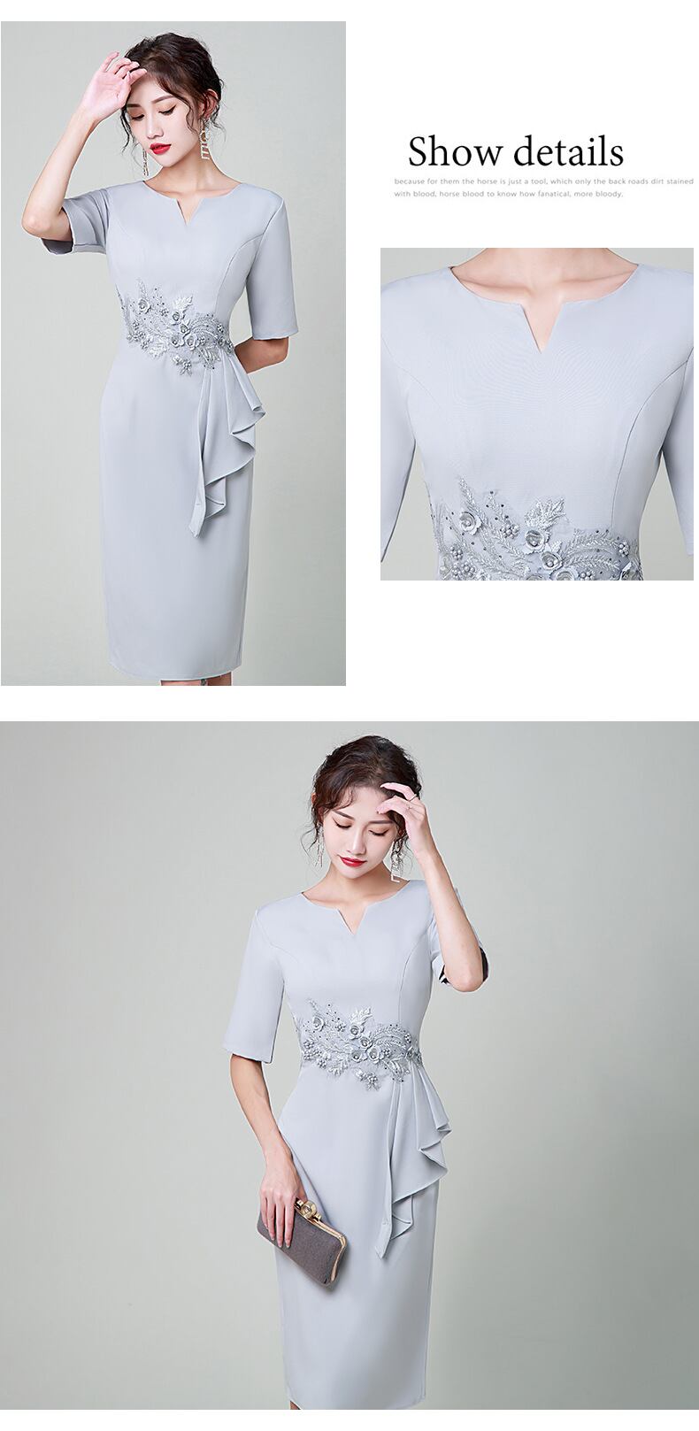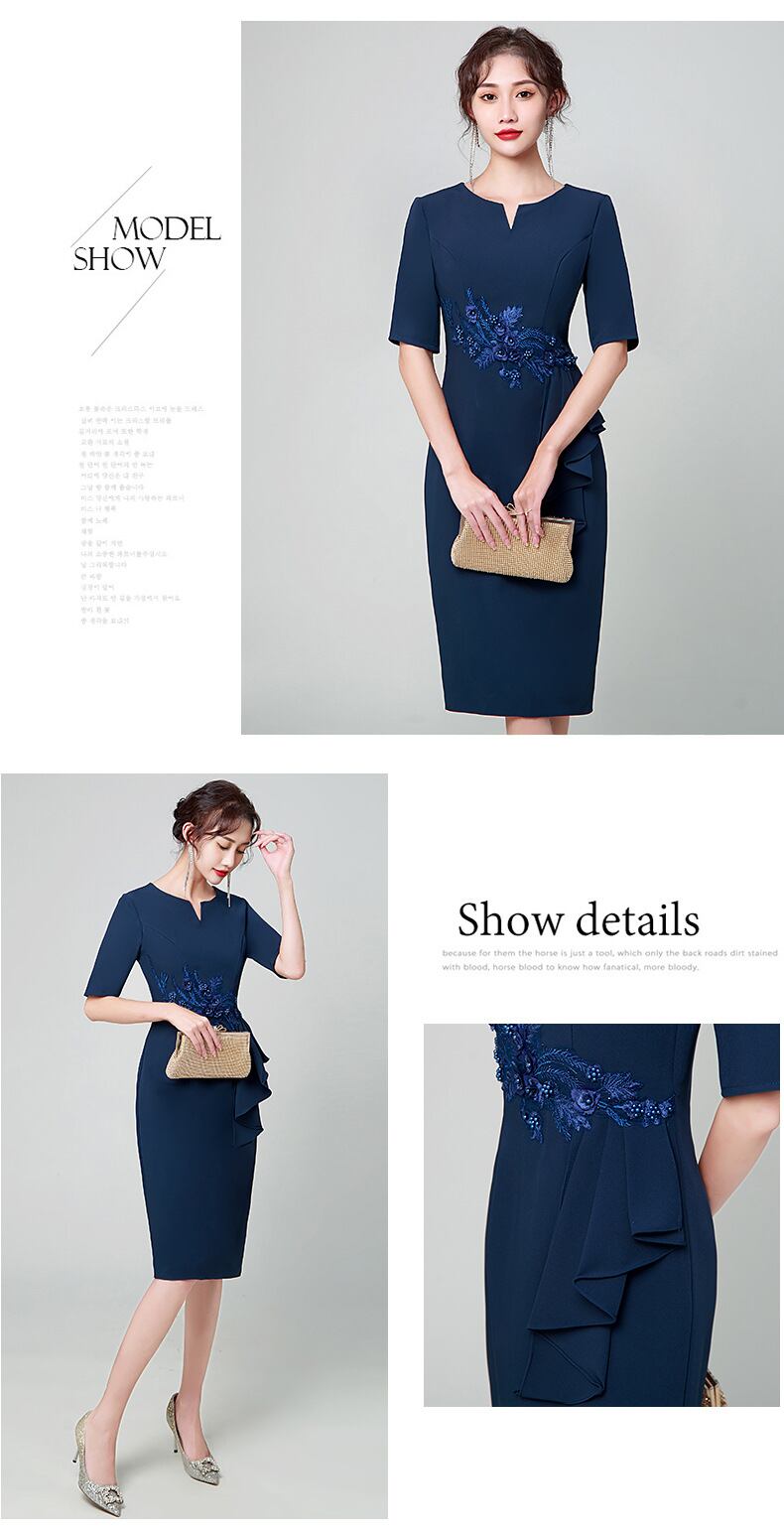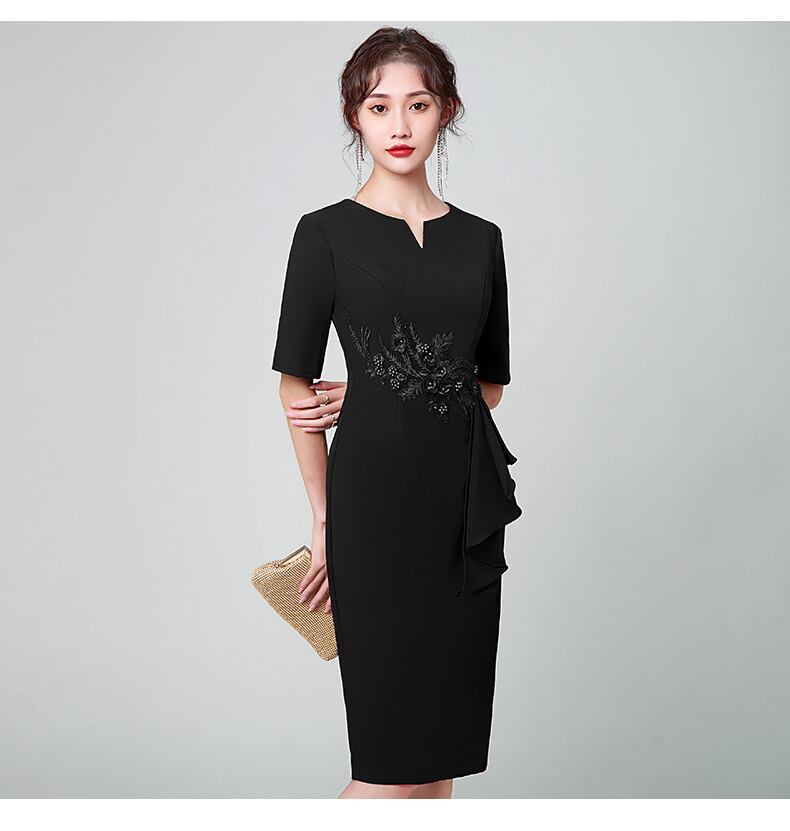 ハーフスリーブ ストレート タイトドレス(ブラック・ネイビー・グレー)